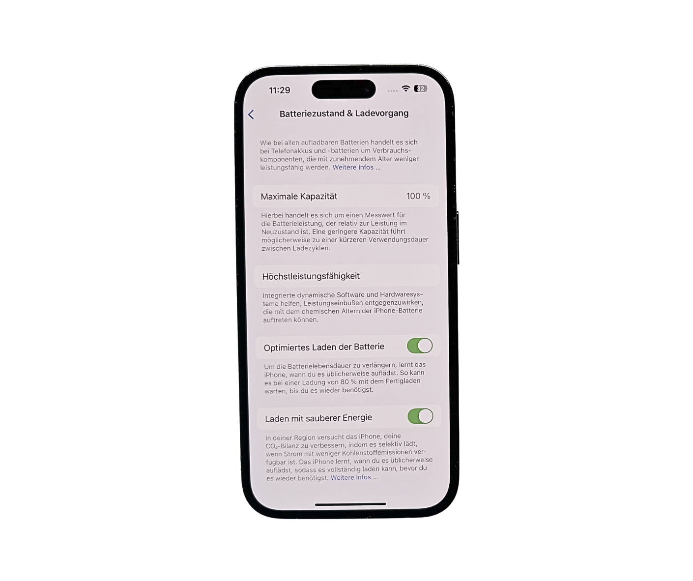 Die iPhones haben standardmäßig einen original Akku, der mindestens 80% seiner ursprünglichen Kapazität hat.