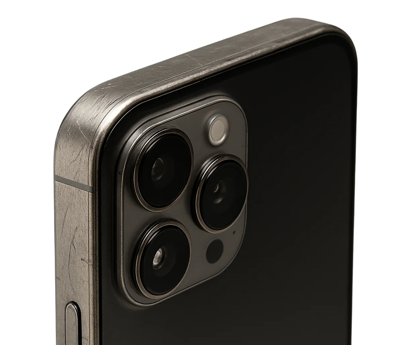 Das iPhone (siehe Beispiel links) kann sichtbare Gebrauchsspuren wie Kratzer und/oder Dellen auf dem Gehäuse haben.