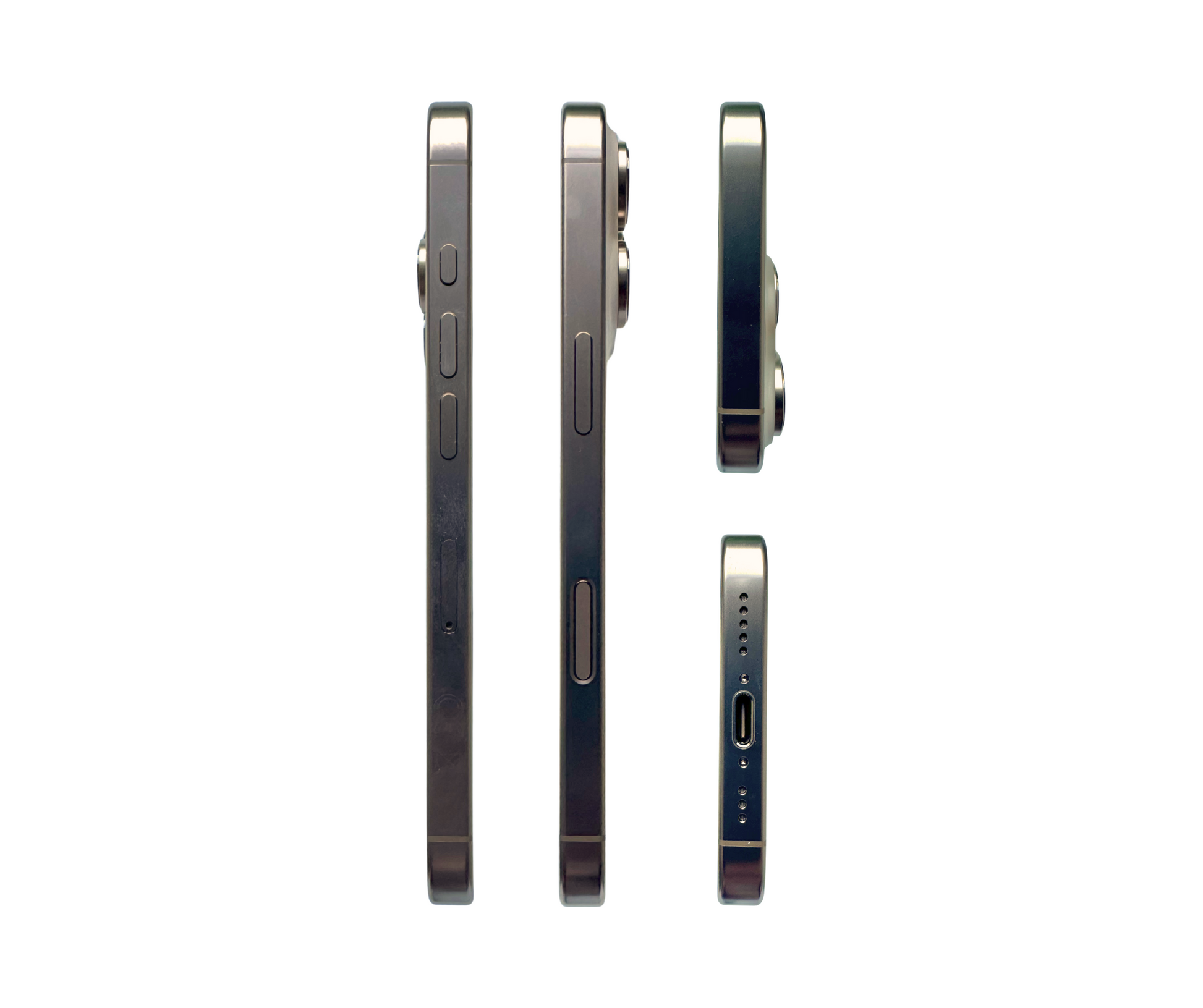 Aluminium mit texturiertem matten Glas auf der Rückseite. Action Button